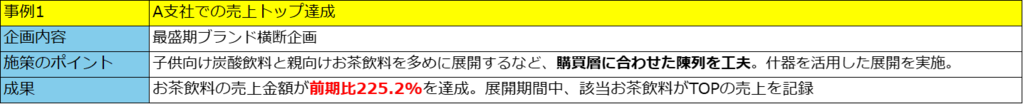 特に、競合カテゴリー商品の排除といった難易度の高い商談を、店舗との関係性を悪化させずに実行する必要がありました。